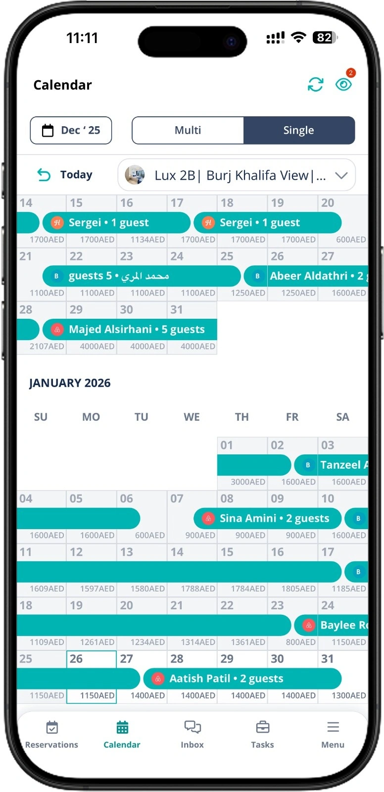 Manage all guest bookings and ensure max. occupancy across all platforms.